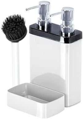 2’li Sıvı Sabun ve Bulaşık Deterjanı Dispenser Seti – Krom Kapaklı, Fırça ve Sünger Hazneli Şık Mutfak/Banyo Organizer