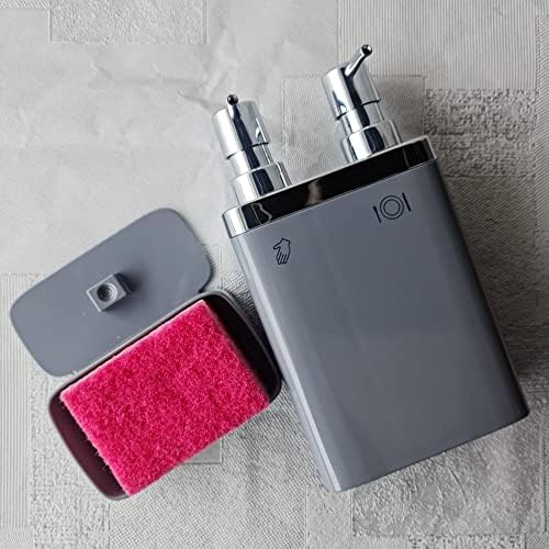 Menşe Ülke: Türkiye Dekoratif mutfak sıvı sabunluk kalitesiyle 2'Li Sıvı Sabunluk, Süngerli, 0, 3lt ve 0, 6 lt Hacim, 12.5 x 13.5 x 22 cm, Gri (M-E10-07)