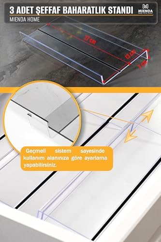 3 Adet Kaydırmaz Pedli Şeffaf Stand Baharatlık Standı Çekmece Içi Düzenleyici Mhydkplx3