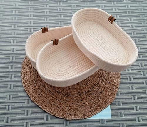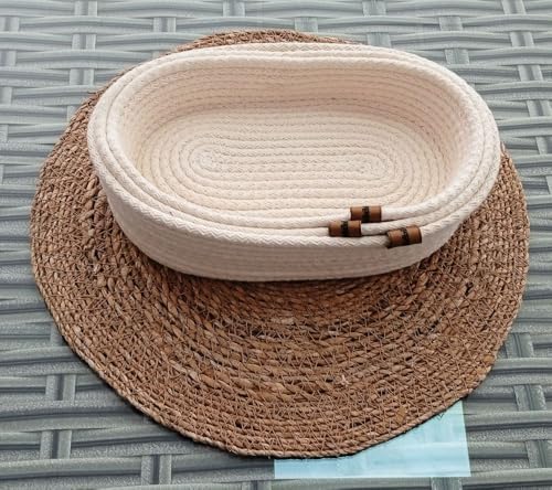3 ADET OVAL HASIR SEPET EV KREM JÜT KORDON HALAT İP ÖRME DEKORATİF DÜZENLEYİCİ ORGANİZER