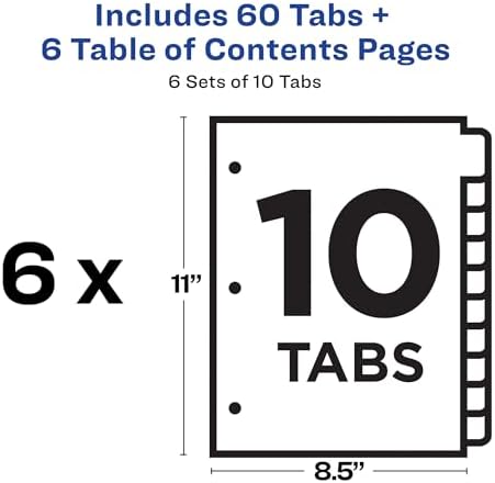 Yazdırılabilir içindekiler sayfası ile sekme bölücülerini hızlı bir şekilde düzenleyin 10 ayırıcıdan oluşan 6 takım dayanıklı delikli kağıttır ve her iki tarafta da askı takviyesi bulunur Esnek tasarım hem dikey hem de yatay yönde çalışır ve eğitim kılavuzları ve proje klasörleri için mükemmeldir Beyaz bölme sekmeleri önceden basılıdır ve etiket veya ek parça gerektirmez Uluslararası ürünlerin ayrı şartları vardır, yurt dışından satılır ve uyum, yaş derecelendirmeleri ve ürün dili, etiket veya talimatlar dahil olmak üzere yerel ürünlerden farklı olabilir. 3 halkalı klasör için 10 bölmeli ayırıcı, özelleştirilebilir içerik tablosu, klasik beyaz sekmeler, 6 set (11823)