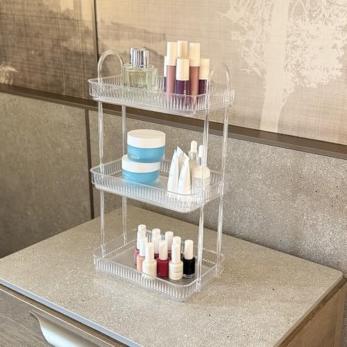 Organizer 3 Katlı Makyaj Organizeri Kozmetik Aksesuar Düzenleyici Kozmetik Vitrini (Şeffaf)