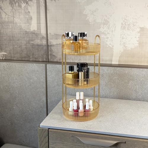 Organizer 3 Katlı Makyaj Organizeri Kozmetik Aksesuar Düzenleyici Kozmetik Vitrini Yuvarlak (Amber Sarı)