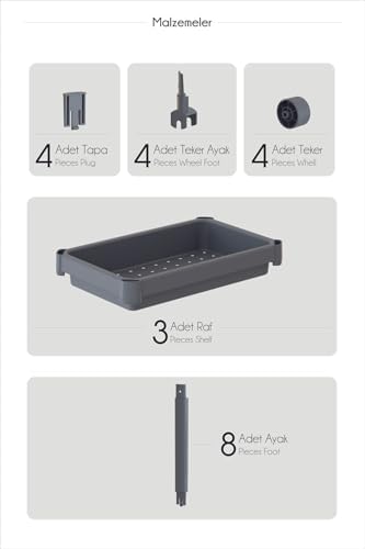 3 Katlı Tekerlekli Raf Ünitesi – Banyo & Mutfak Organizer – Çok Amaçlı Servis Sehpası – Dar Alanlar İçin Pratik Saklama Çözümü (GRİ)