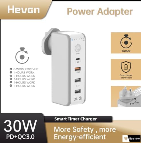– Üstün Şarj Cihazı: Zaman Kontrollü Şarj Cihazı, tüm şarj ihtiyaçlarınız için eksiksiz bir çözüm sunar. Akıllı Telefonlarınız için Güç Dağıtımı 30W Tip C Bağlantı Noktası, Hızlı Şarj QC 3.0 Süper Hızlı Şarj, en yeni Serisi için mükemmel uyum, Özel 2.4A Çift USB Bağlantı Noktaları. Evde, Ofiste ve Seyahatte Tüm Akıllı Cihazları Aynı Anda Şarj Edin – Zamanlanmış Şarj: Akıllı Şarj Teknolojisi Çipi ile etkinleştirilen Zamanlı şarj cihazı, aşırı şarj nedeniyle bataryaya zarar vermeden cihazları güvenli ve etkili bir şekilde şarj eder. Zamanlanmış işlev, cihazlarınızı şarj etmek istediğiniz zamanı kontrol etmenizi sağlar. Akıllı Devre Çipi aşırı akımı, aşırı şarjı ve aşırı ısınmayı önler, cihazlarınız için Eksiksiz Güvenlik Koruması, güvenli bir şarj deneyimi sağlar. – Enerji Tasarrufu: Zamanlayıcı işlevi, kullanıcı tarafından belirlenen süre sonunda gücü keser. Bu, cihazlarınızın gereksiz yere her zaman açık kalmamasını sağlar. Enerji Tasarrufu, Kaynak Tasarrufu – Manuel Zamanlayıcı Seçenekleri: İçerideki Akıllı çip, dışarıdaki Beş zamanlayıcı seçeneği özelliği ile kontrol edilir… Bu, akıllı cihazdaki gerekli meyve suyuna bağlı olarak 1 saat, 2 saat, 3 saat, 4 saat ve 5 Saat olmak üzere manuel şarj süresi ayarlama esnekliği sağlar 30 WATT PD18W Zaman Ayarlı USB Çıkışlı Priz 180 Derece Döndürülebilir Fiş QC3.0 2.4A USB Çıkışlı M8J301TE