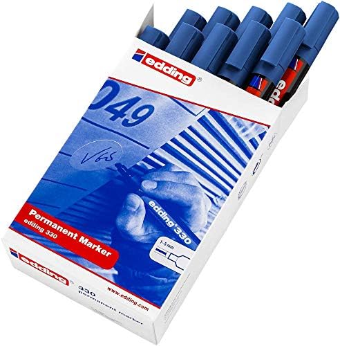 Kâğıt, karton, metal, plastik ve cam gibi neredeyse tüm malzemeler üzerinde yazı ve işaretleme için permanent markör Kesik uç kalınlığı: 1-5 mm Neredeyse tüm yüzeylerde su geçirmez ve aşınmaya karşı dirençli 330 permanent markör mavi – 10 kalem – 1-5 mm kesik uçlu