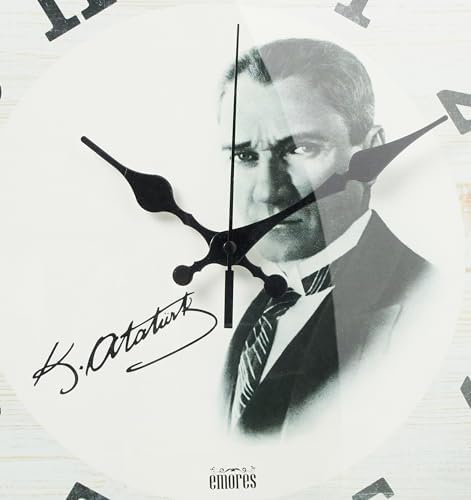 ABS Kasa, Ofset ve Serigrafi Baskılı Kadran 1.Sınıf Kalite Makine Sessiz Akar Saniye Beyaz 36 Cm Gerçek Cam Akar Saniye Sessiz Mekanizma Dekoratif Atatürk Duvar Saati