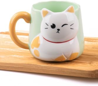 3D Kabartmalı Kedi Porselen Kupa – 450 Ml Büyük Kapasiteli, Şık Ve Eğlenceli Tasarım,Yeşil