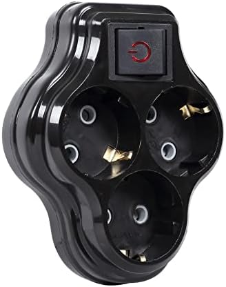 3lü Anahtarlı, Üçlü Topraklı Priz Duvar Tipi Çoklayıcı Fiş, 16A 250 Volt, Max 3600 Watt (Siyah)