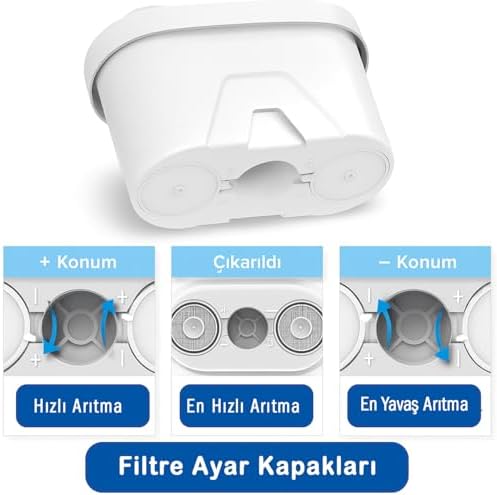 Kartuşun altındaki kapakları +/- çevirerek arıtma hızı ayarlayabilirsiniz: Hızlı arıtma için + kapakı dönün Kartuş %100 geri dönüştürülebilir, kolay aylık değişim için parmak deliklerine sahiptir Litre başına birkaç kuruşa harika lezzetli su sağlar İyon değişimli inciler için, kireç ve metalleri azaltır , Aquaphor, ve popüler su arıtmalı sürahilere uyumludur Ürünün altındaki hız ayarı kapakları çıkabilir. Bu durumda daha hızlı arıtma sağlar. Ürünün boyutları ve su arıtma cihazına uyumunu görseline bakarak kontrol edebilirsiniz 3'lü Arıtmalı Sürahi Filtre Kartuşları – Ayarlanabilir Filtrasyon Hızı, İyon Değişimli Kireç Azaltıcı, 160 Litre Kapasite, Geri Dönüştürülebilir ve Popüler Sürahilere Uyumlu