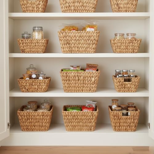 3'lü Doğal Hasır Sepet Seti – Çok Amaçlı Banyo ve Mutfak Düzenleyici, Tutma Saplı Dekoratif Dikdörtgen Saklama Kutusu (Küçük-Orta-Büyük Boy) Dikdörtgen