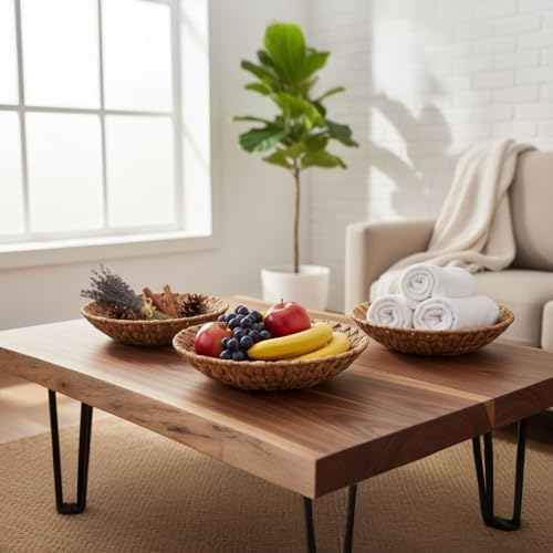 3'lü Hasır Dekoratif Tepsi Seti | Çok Amaçlı Sunum & Düzenleyici | Mutfak, Salon, Bahçe | El Yapımı Su Sümbülü Dokuma | 3 Boy (27cm-5cm, 31cm-6cm, 35cm-7cm)