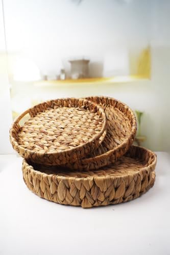 3'lü Rustik El Yapımı ve Doğal Yuvarlak Hasır Tepsi Seti, 3'lü Hasır Yuvarlak Tepsi Seti, 3 Boy Hasır Tepsi (38 * 6cm-34 * 5cm-30 * 24 * 4,5cm)
