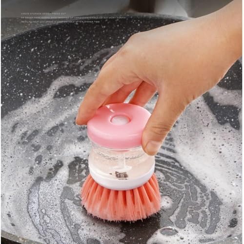 3’lü Sabunluklu Avuç İçi Bulaşık Fırçası – Doldurulabilir Sabun Hazneli, Ergonomik Silikon Saplı, Yapışmaz Yüzey Dostu, Tencere ve Tabak Temizliği İçin Dayanıklı Naylon Filament, Asorti Renkli, 9×7 cm
