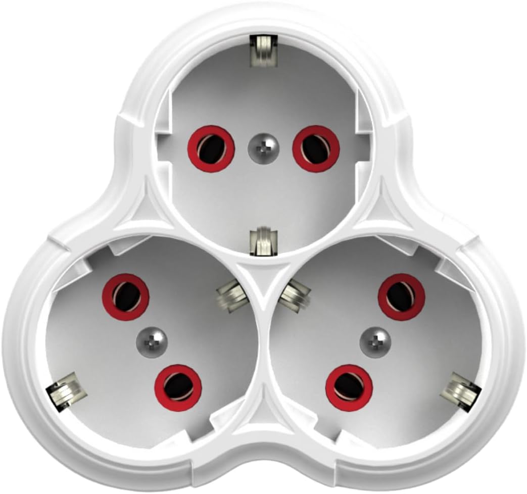 3'lü Topraklı Papatya Priz, Beyaz Çoklu Elektrik Prizi, 3 Yuvalı Grup Priz