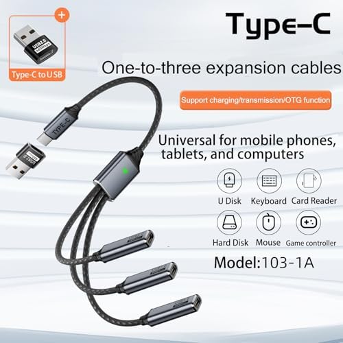 3'lü Type-C Çoklayıcı 25 Cm Hızlı Şarj ve 480 Mbps Veri Aktarımı 3CC