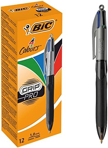 4 Colours Grip Pro Tükenmez Kalem 12'Li Kutu, Kauçuk Tutacak, 1.0mm Uç, Tek Kalemde Mavi, Kırmızı, Yeşil ve Siyah Renkler