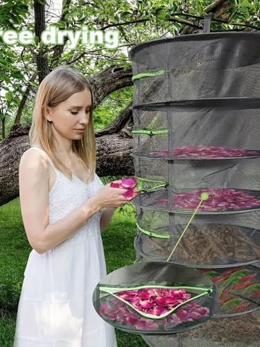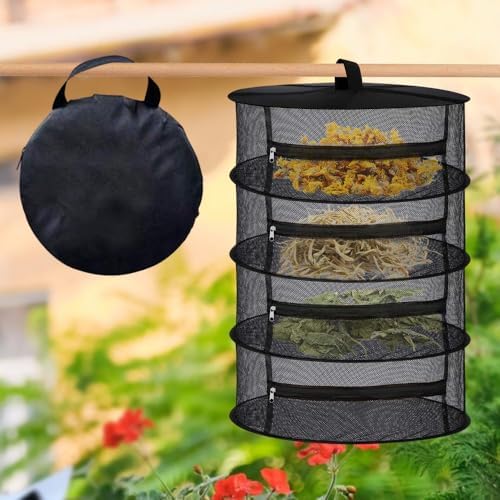 4 Katlı Fermuarlı Meyve Sebze Kurutma Filesi | Katlanabilir Doğal Kurutma Sepeti SİYAH