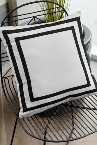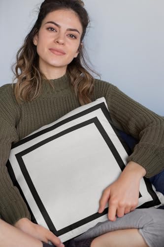 43X43Cm Tay Tüyü Dokuma Premium Kumaş Çift Taraflı Kırlent Yastık Kılıfı Modern Çerçeveli Krl321