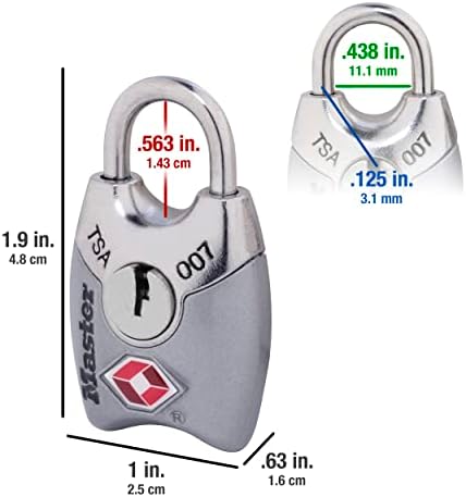 TSA onaylı bavul kilidi, güvenlik görevlilerinin kilide zarar vermeden bagajı incelemesini ve yeniden kilitlemesini sağlar. Not: Doğru ürünü bulmak için kapınızın arka kısmını, çapraz deliğini ve kalınlığını ölçün. Asma kilitler aynı anahtarla açılır – tek bir anahtar dört kilidi de açar. TSA onaylı valiz kilidi, dayanıklılık için metal gövdeye ve kesilmeye karşı direnç sağlayan korumalı çelik kelepçeye sahiptir. 2,5 cm. kilit gövdesi genişliği, 3 mm kelepçe çapı; 14 mm uzunluk ile, 11 mm genişlik. Mavi, pembe, mor ve gümüş renklerde mevcuttur (renk sevkiyat sırasında rastgele seçilir). 4689q TSA Asma Kilit Anahtar 16 Her Pakette 4 Adet 4689Q
