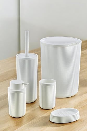 5 Parça Lüx Plastik Banyo Seti 7 Litre Dokunmatik Çöp Kovalı, Antibakteriyel Fırça (Siyah-Gri) (BEYAZ)