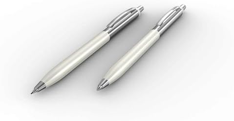 Krom kaplama metal aksesuarlar. Krom kaplama paslanmaz çelik klips. Fırçalanmış (brushed) paslanmaz çelik üst gövde. Parlak inci beyazı lake kaplama metal gövde. Basmalı mekanizma. Standart G2 Tükenmez Refil. 0.7 mm mekanik kurşunkalem 51 Tükenmezkalem & Versatil Kalem Ikili Set Inci Beyazı, Kristal Kutu