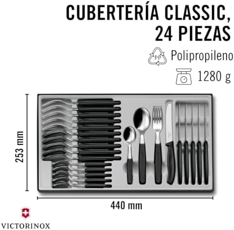 İsviçre yapımı masa seti Yüksek kaliteli polipropilen sap ve yüksek karbonlu paslanmaz çelik bıçak Bıçak ve çatallar bulaşık makinesinde yıkanabilir. 6.7833.24 24 Parça Table Set