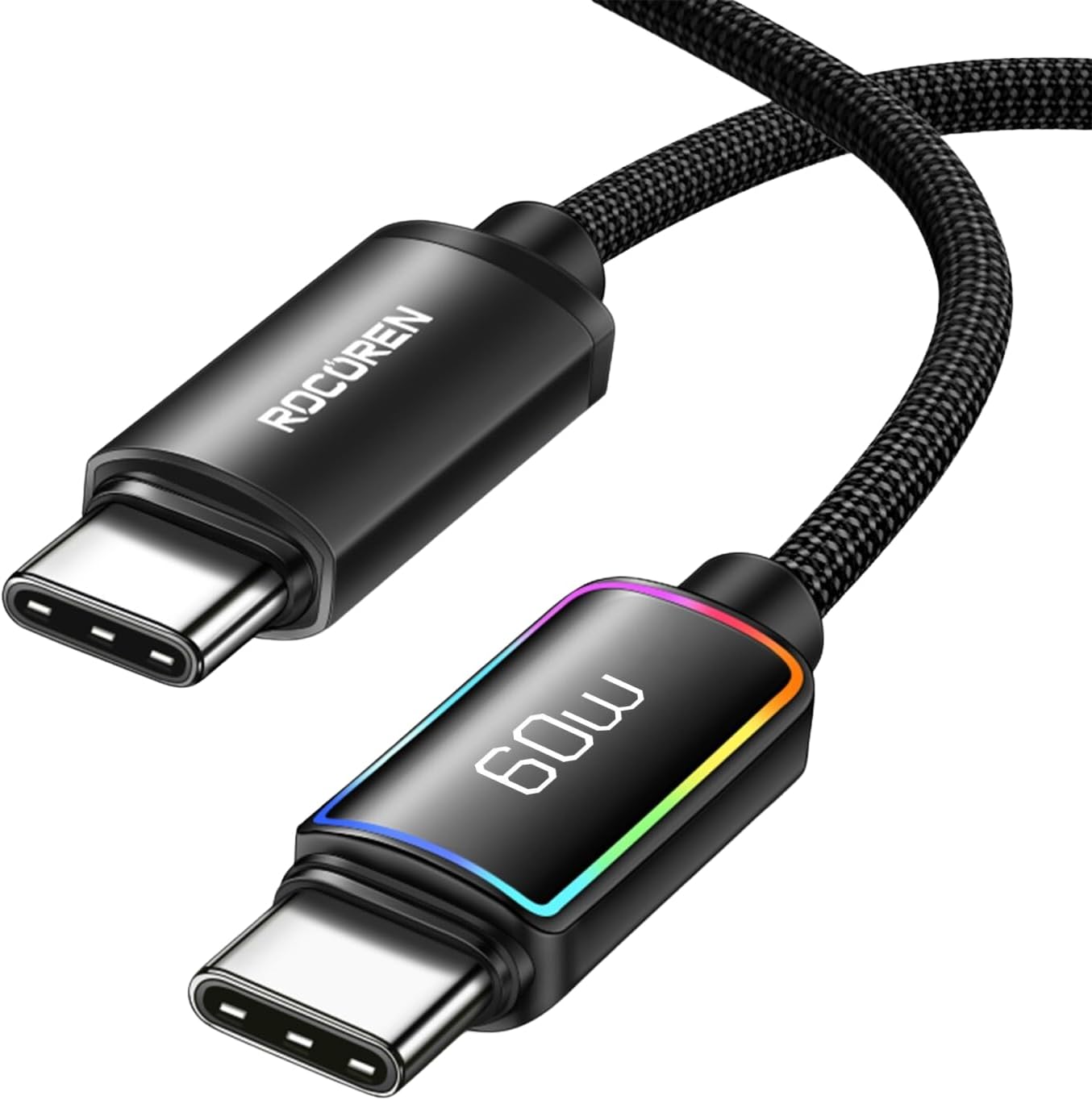 60W Type-C to Type-C RGB Aydınlatmalı Örgülü Şarj ve Data Kablosu 1 Metre