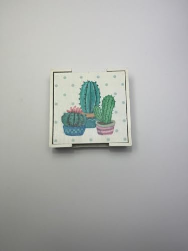 Bardak Altlığı 6’lı Ahşap Bardak Altlığı Seti (Kutulu – Kaktüs Desenli)
