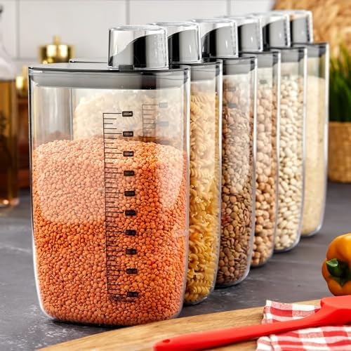 6'Lı Vakumlu Hava Geçirmez Ölçekli Siyah Saklama Kabı Seti – 2000 ML Ölçü Kapaklı Bakliyat Kabı Seti