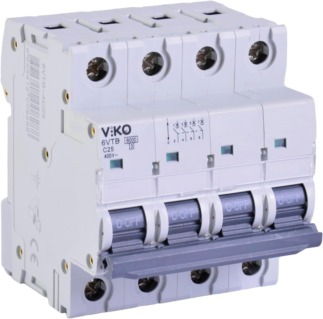 6VTB-4C25 Otomatik Sigorta 6kA C Tipi 4 Kutup 25A