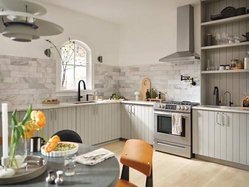 Leke tutmaz: Lekelenmeye Dirençli Nikel kaplama, daha temiz görünen bir banyo için parmak izlerine ve su lekelerine karşı dayanıklıdır. Sıcaklık Kontrolü: Tek kollu musluk su sıcaklığını ayarlamayı kolaylaştırır. Esnek tasarım: 2 veya 4 delikten monte edilmek üzere tasarlanmıştır; rozet dahildir. ADA ile uyumludur: Engelli Amerikalılar Yasası (ADA) şartlarına uygundur Her damla, sertifikalı güvenli: Her ev tipi mutfak ve banyo bataryası, Federal Güvenli İçme Suyu Yasası ve NSF 61 standartlarına uygundur. ’i temiz içme suyu için güvenli bir tercih haline getirir. Uzun Ömürlüdür: – 7430SRS Chateau Tek Kollu Yan Püskürtücülü Düşük Ark Mutfak Bataryası, Spot Dirençli Paslanmaz
