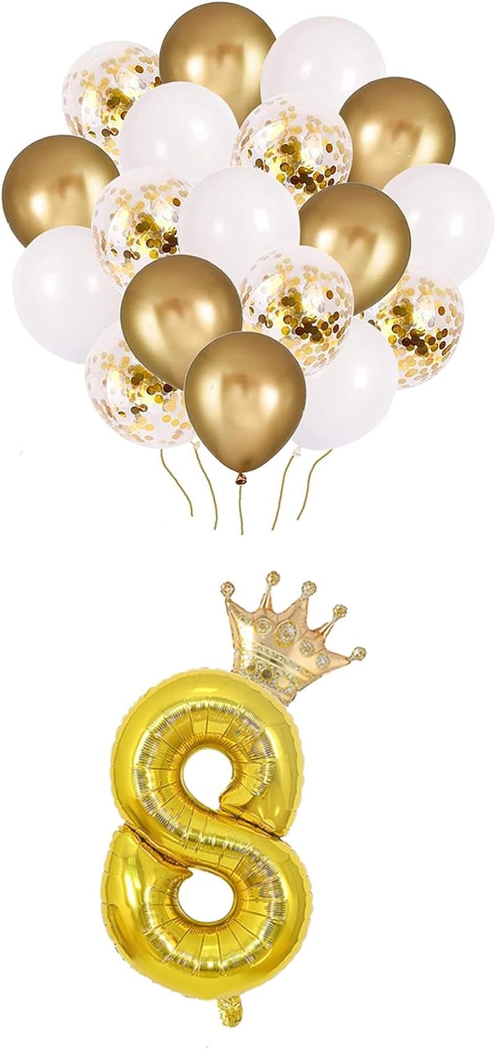 8 Rakam Folyo Balon, Kral Tacı Ve Konfetili Balon 8 Rakam Folyo Balon, Kral Tacı Ve Konfetili Balon