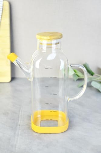 800 ml Bambu Kapaklı Borosilikat Cam Kare Yağlık