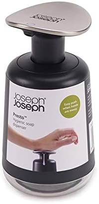 Büyük, kolay basılan pompa başlığı Eller kirliyken bilekle basma Dolum seviyesini kontrol etmek için şeffaf pencere Kaydırmaz taban Her türlü sıvı el sabunu için uygundur 85137 Presto Sıvı Sabunluk, Gri 85137 Presto Sıvı Sabunluk, Gri