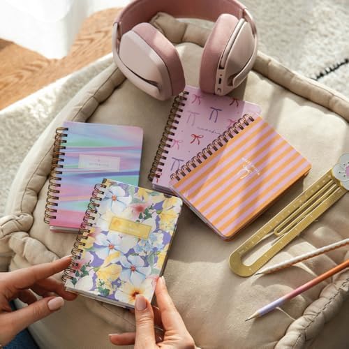 9×14 cm Sert Kapak Spiralli Çizgili 4’lü Cep Not Defteri Seti – Kurdele