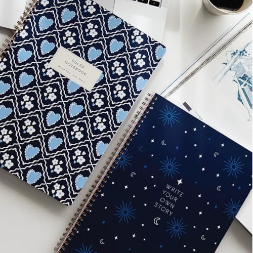 A4 Spiralli Karton Kapak 2’li Set Çizgili Okul Defteri 80 yaprak, Ders Programlı Lacivert Kalp
