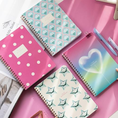 A5 Spiralli Karton Kapak 4'lü Set Çizgili Okul Defteri 80 yaprak – Ders Programlı Mavi Pembe Yıldız