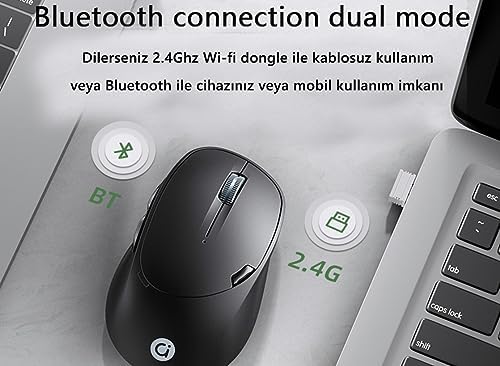 Adol Kablosuz Dual Band Hibrit Bluetooth & Kablosuz Mouse Şarjlı Siyah