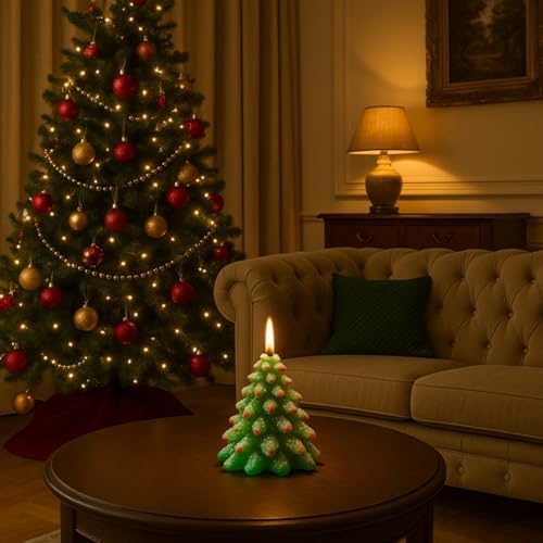 Ağacı Şekilli Dekoratif Mum – El Yapımı Koku Yaymayan Yılbaşı Temalı Masa ve Ev Süsü Mum (Tekli)
