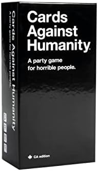 Korkunç insanlar için bir parti oyunu. Sonsuz tekrar oynanabilirlik için 500 beyaz kart ve 100 siyah kart ile birlikte gelir. Mantıklı oyun kuralları ve akıl almaz alternatif kurallardan oluşan bir kitapçık içerir. Bu ana oyun. Önce bunu satın al. Kanada”da yaşadığınızı unutacağınız kadar komik özel Kanada kartları içerir! Against Humanity: Kanada Sürümü