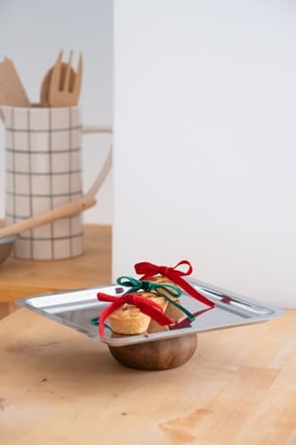 öğe şekli: Kare & Ahşap Ayaklı Metal Kare Servis/Sunum Tepsi