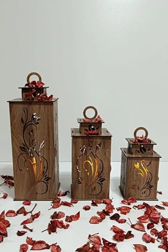 Çiçek Tasarımlı Ahşap Dekoratif Mumluk Kahverengi 2 Ahşap Dekoratif Mumluk Kahverengi 2
