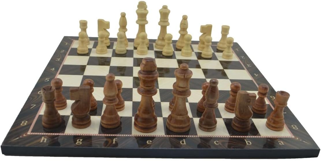 Ahşap Satranç Takımı ve Ceviz Desenli Tahtası Büyük Boy (37×37 cm.)