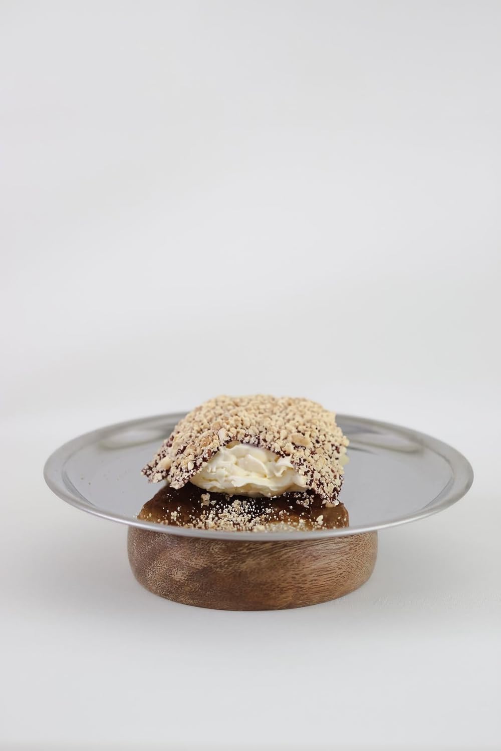 & Ahşap Tabanlı Metal 18 Cm Yuvarlak Servis/Sunum Tabak Dekoratif Stand