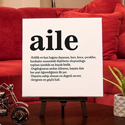 25 x 25 cm ölçüsündedir Özel kanvas kağıdı üzerine yüksek kalitede dijital boya kullanılarak üretilmektedir Doğal ahşap çerçeve üzerine gerilerek birleştirilmektedir Uzun yıllar renklerini korumaktadır Masaüstü ayağı gönderilmemektedir Masa ayağı dekoratif amaçlı görselleştirme için kullanılmıştır Duvar kullanımı için uygundur Aile Kelime Anlamlı Kanvas Tablo