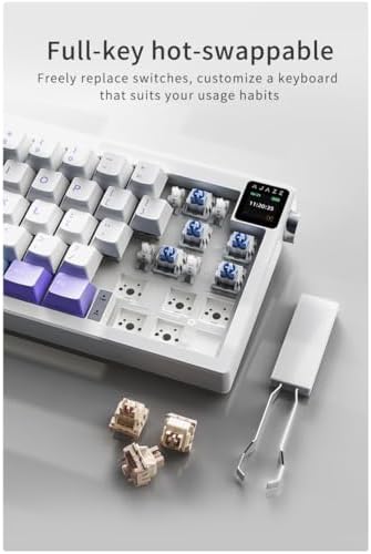 Ajazz AK650 Kablosuz Mekanik Klavye 3 Modlu TFT Ekranlı Hot-Swap-65 Tuşlu RGB Mor/ Switch