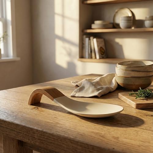 Akasya Saplı Silikon Tezgah Üstü Kaşıklık | Mutfak Kirli Kaşık Altlığı | Şık ve Dayanıklı | Salça Lekesi Tutmaz | 21 cm Boy