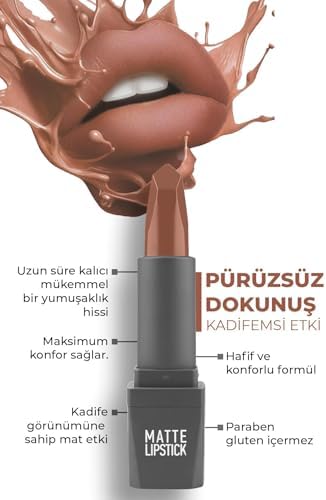 ALIX AVIEN Yoğun Renk Veren Uzun Süre Kalıcı Nemlendirici Kadifemsi Mat Ruj – Matte Lipstick 404 Warm Caramel