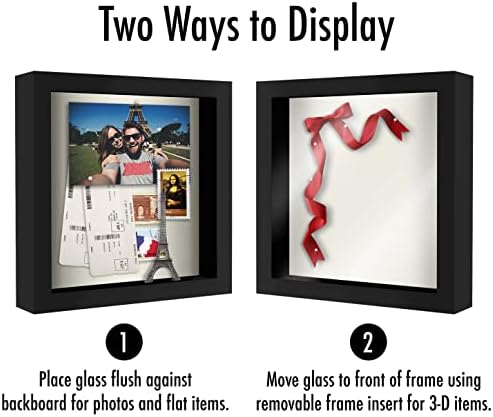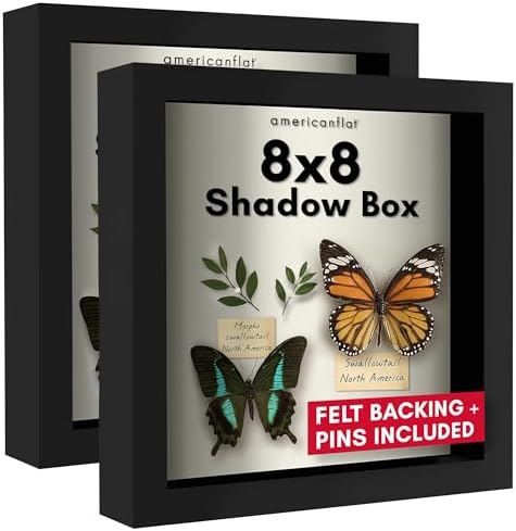Americanflat 8×8 Gölge Kutusu Çerçeve Siyah Yumuşak Sırtlı – Duvar ve Masa Üstü için Kırılmaya Dayanıklı Camlı Kompozit Ahşap – 2'li Paket